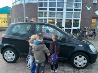In de klas zijn we bezig met onze eigen auto. Tijdens de brainstorm hebben we alles benoemd wat met auto´s te maken heeft en ook konden we kijken in de auto van juf Annick. Hier konden we zien wat een auto allemaal heeft, 4 wielen, een achterbak, ruitenwissers, een nummerbord en ook hebben we de toeter even getest!