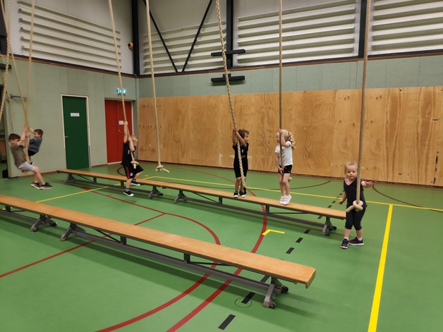 Boffen wij even?! De kleuters van de Vlieberg mochten vandaag gezellig een keer mee gymmen in de grote gymzaal! Spannend hoor, hier zijn allerlei dingen die wij in de speelzaal niet hebben zoals touwen en baskets. Heerlijk, al die ruimte! Bedankt Juf Tessa!