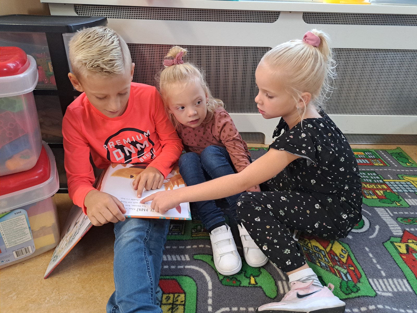 Gisteren is de Boekenweek van start gegaan! Om het lezen en voorlezen te stimuleren staan er de aankomende week allerlei activiteiten op het programma in de groepen die in het teken staan van lezen. We startten de Boekenweek gisteren door de oudere kinderen die voorlazen aan de jongere kinderen. Samen zochten ze een leuk boekje en en fijn plekje uit in de school. Ook de kinderen van het KDV en de PSL deden mee en vonden het wel heel bijzonder dat de grote kinderen kwamen voorlezen!