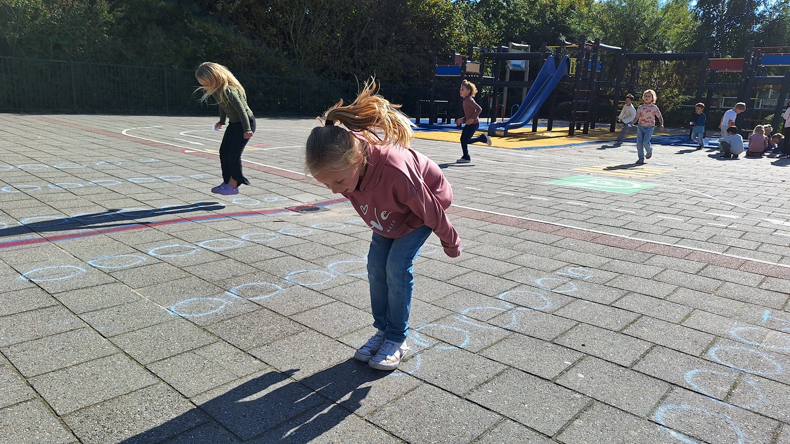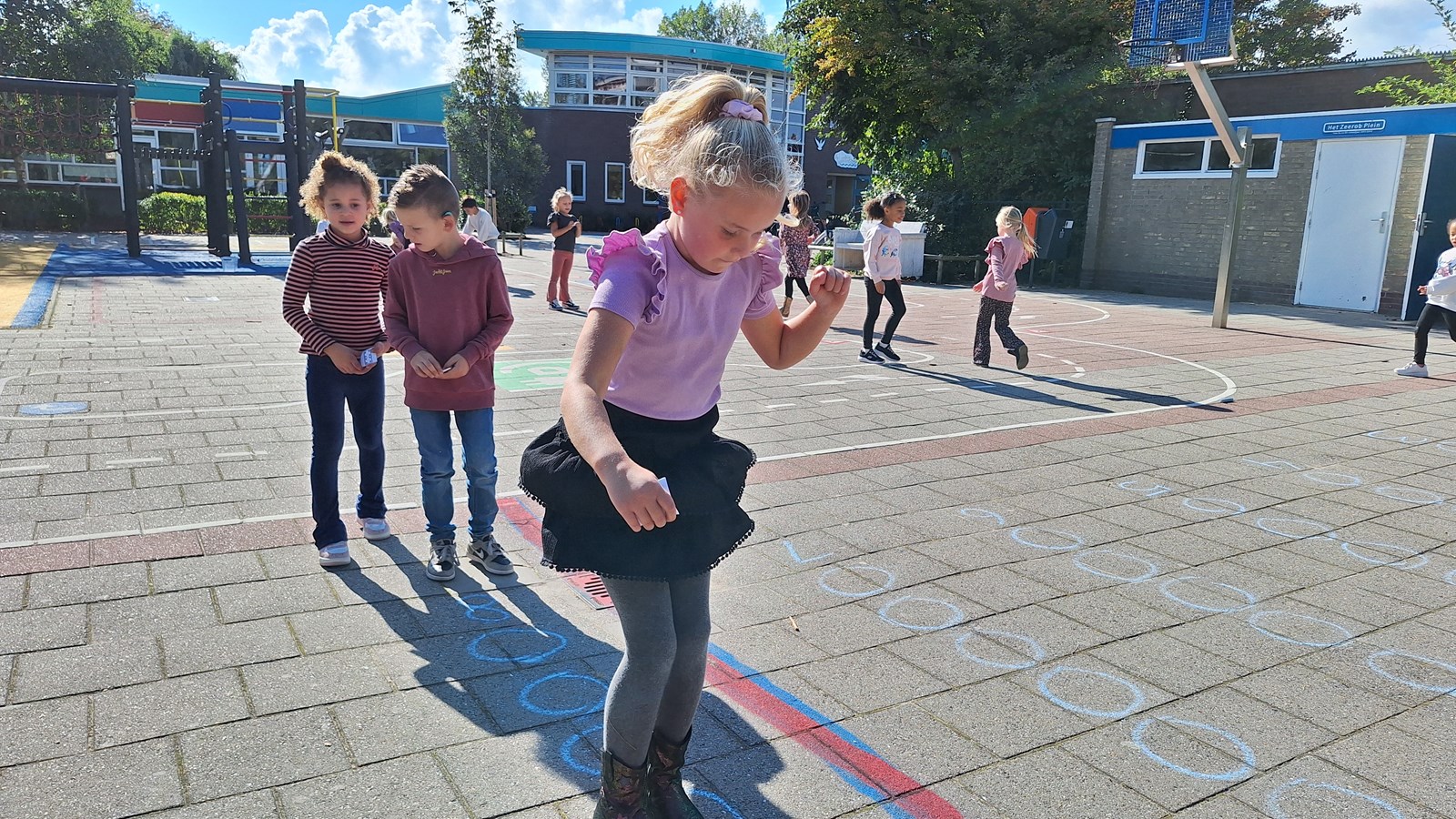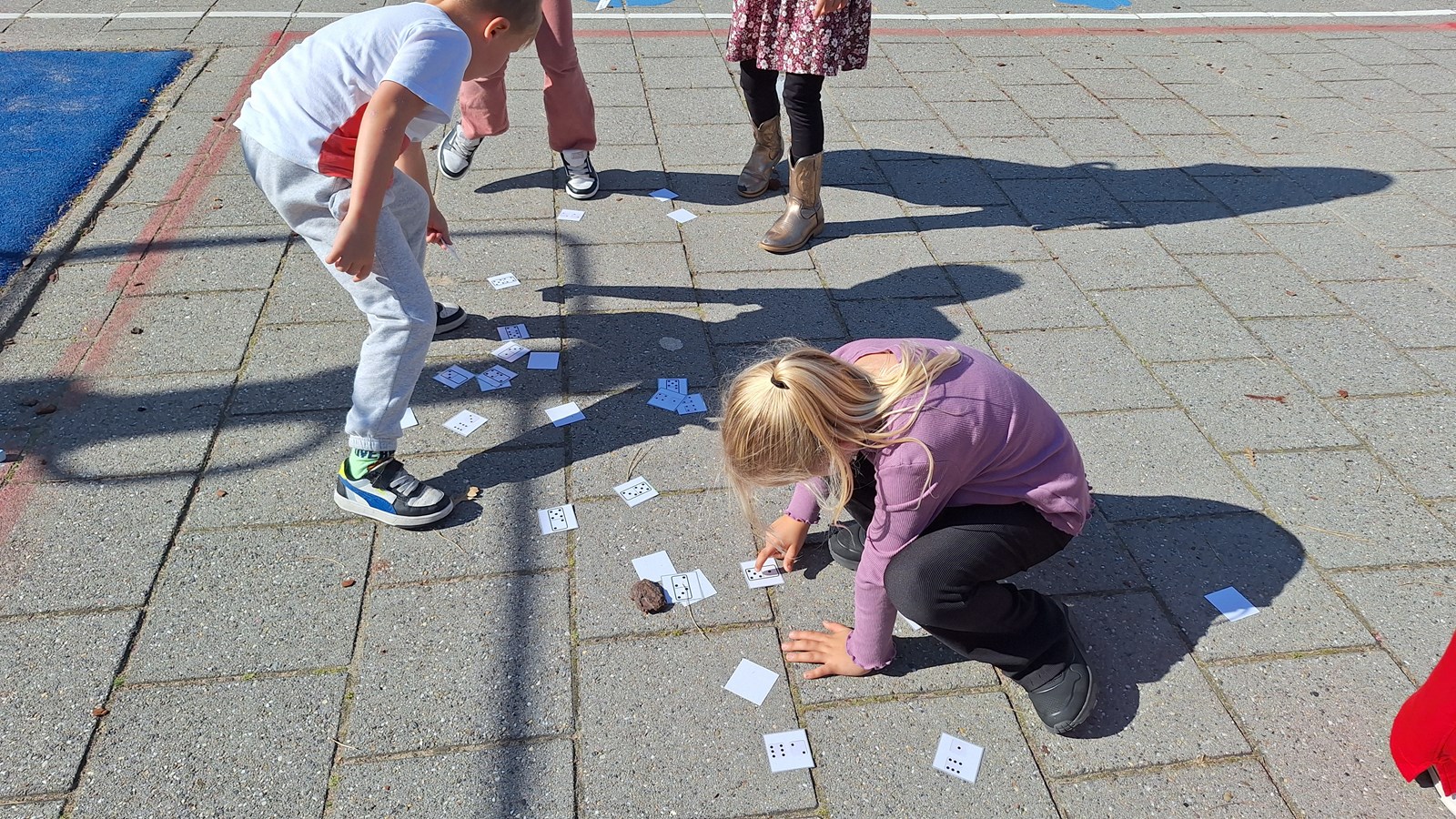 De kinderen telde razendsnel, rende naar het juiste getal, sprongen het aantal én legden het kaartje in het juiste bakje.