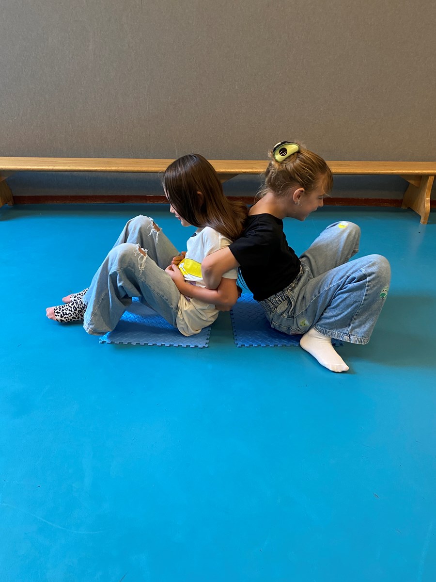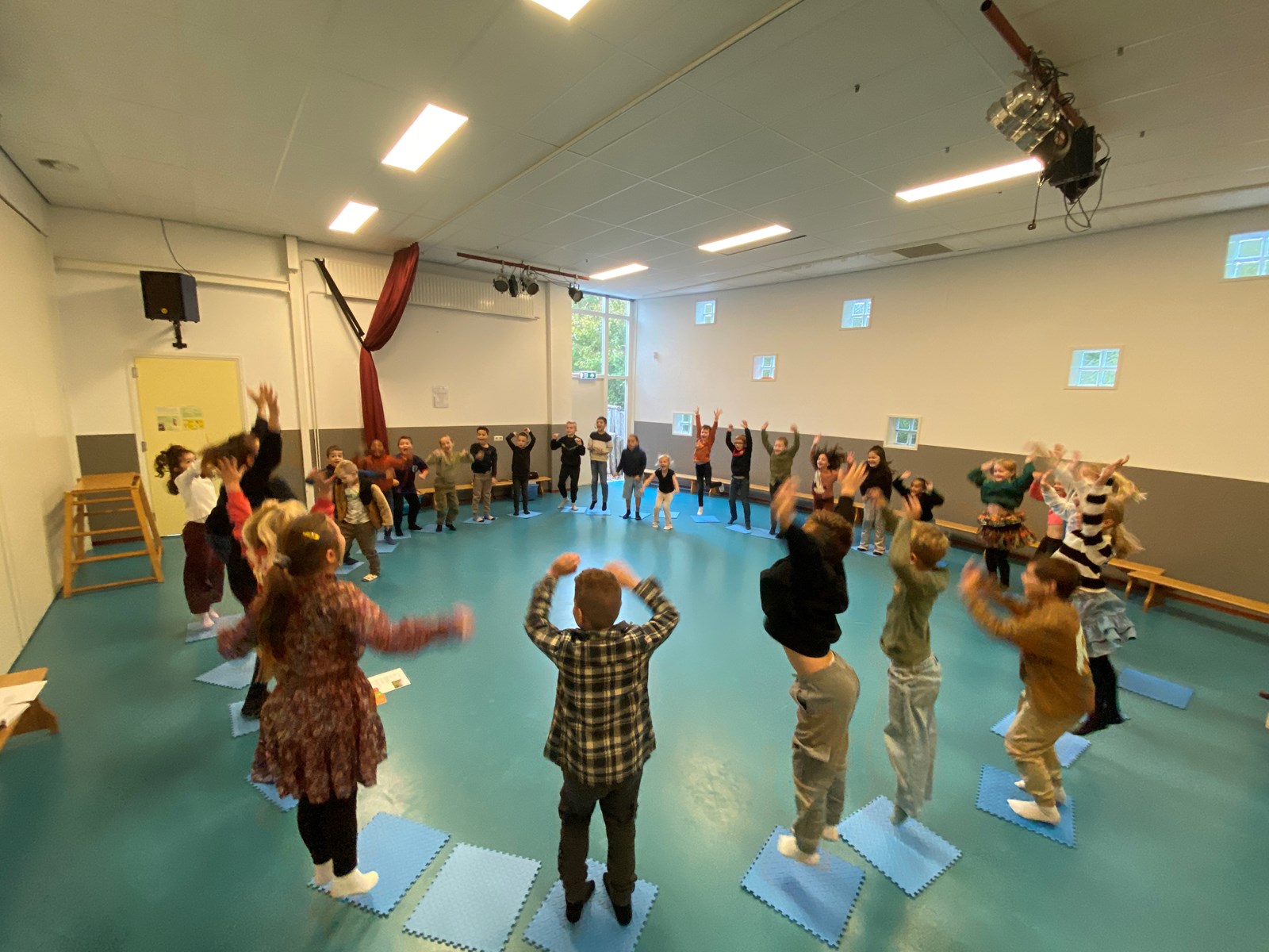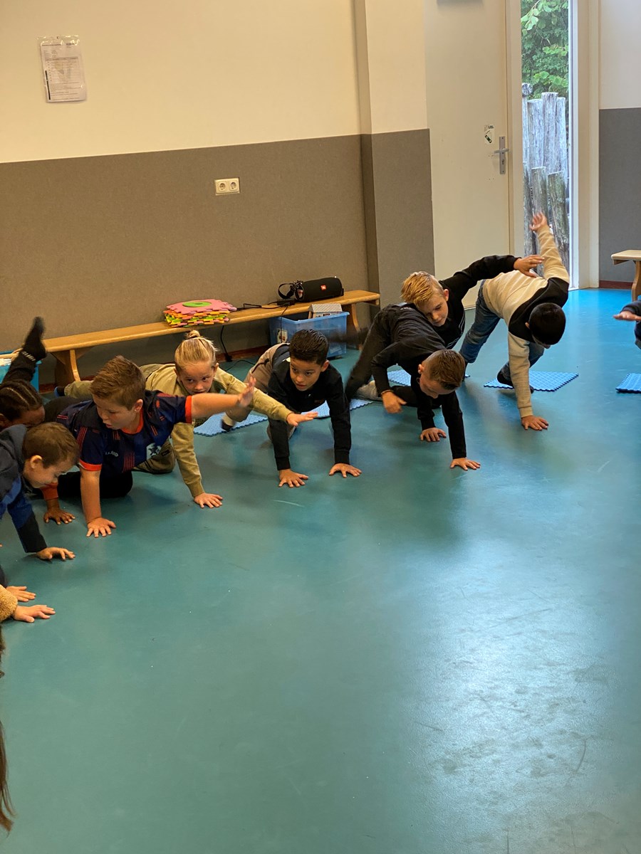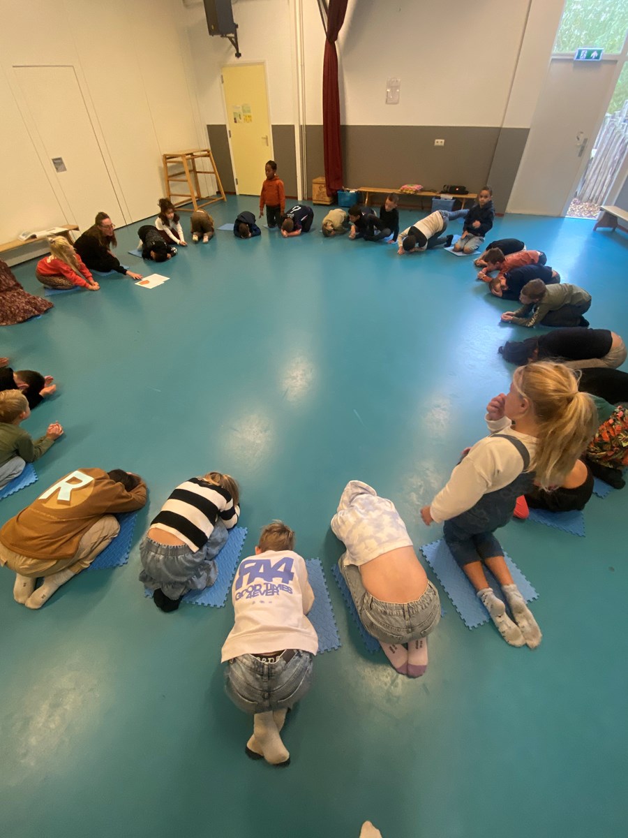 Vandaag kregen de groepen 3 t/m 8 een yogales in de speelzaal.