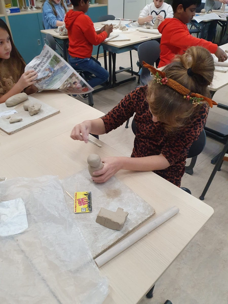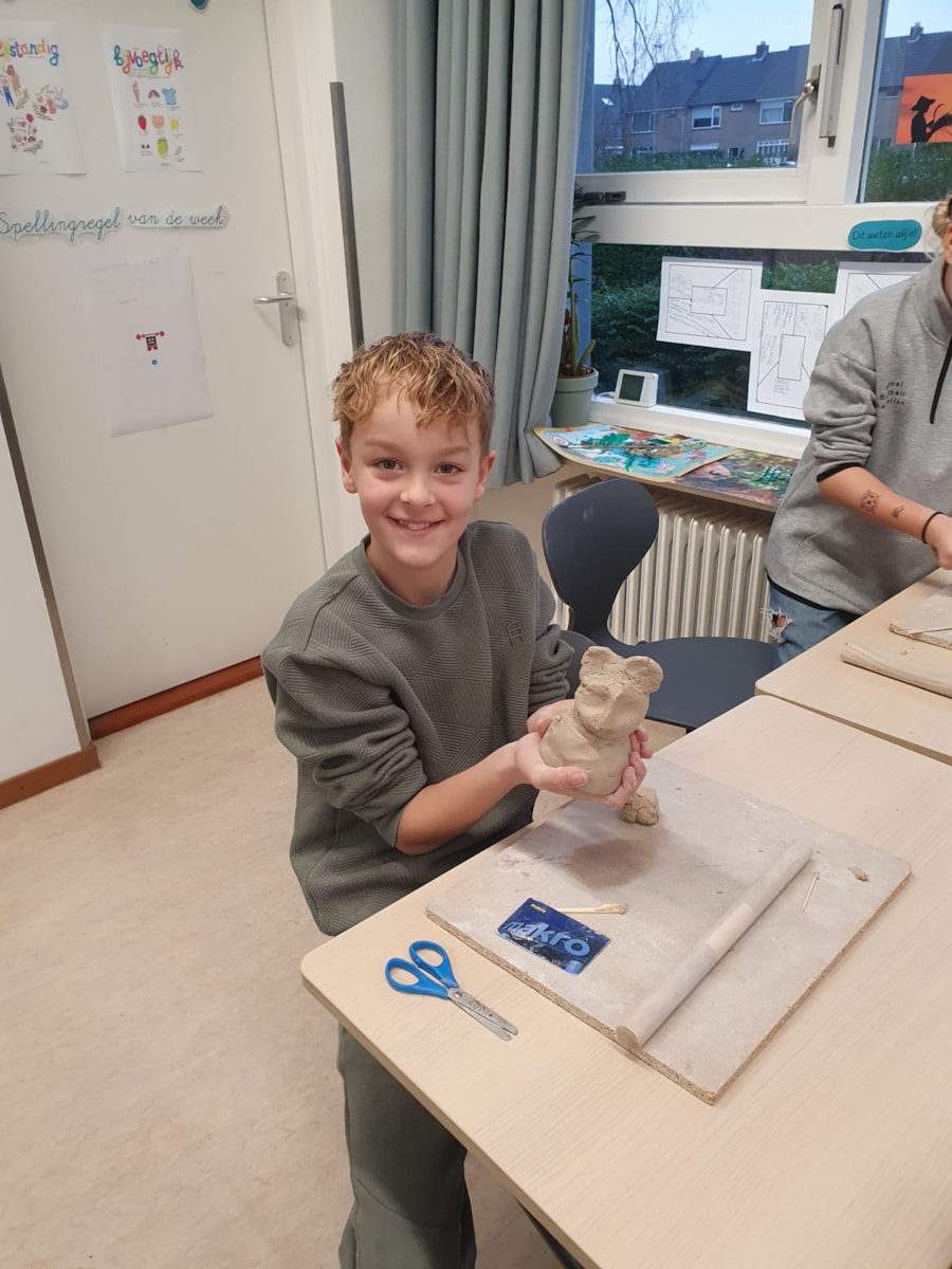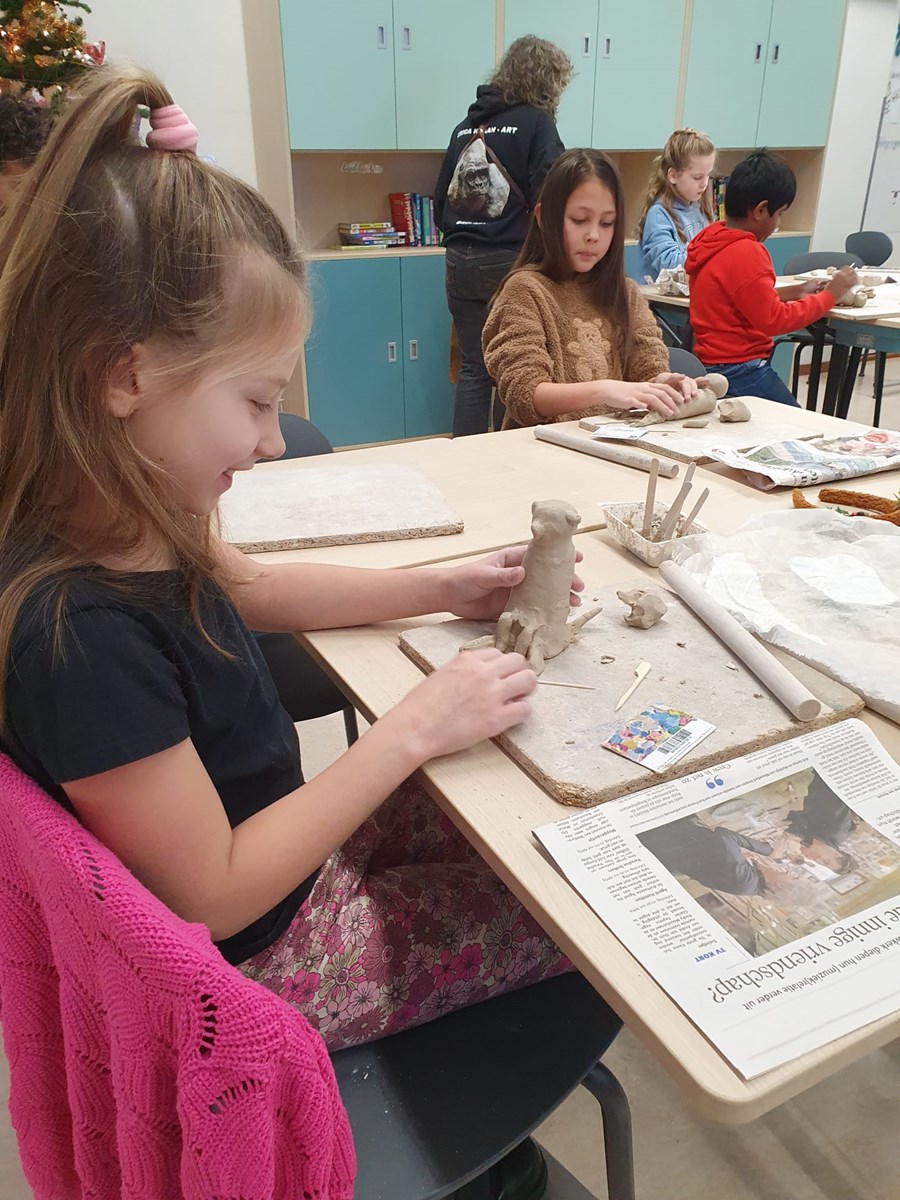 Tijdens deze les zijn de kinderen creatief aan de slag gegaan met klei en hebben zij een dier geboetseerd. De kunstwerken worden nu afgebakken en na de kerstvakantie zullen de kinderen hun kunstwerk weer zien!