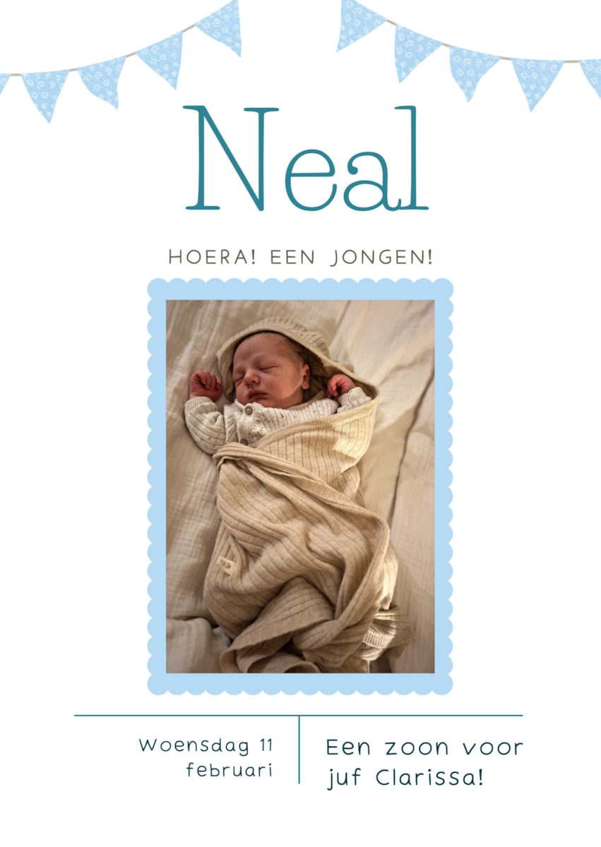 Gisteren is juf Clarissa bevallen van een prachtige zoon genaamd Neal. Moeder en kind maken het goed en genieten thuis lekker van elkaar. We wensen Bob en Clarissa heel veel geluk met hun zoon en Dane mooie avonturen met zijn broertje.