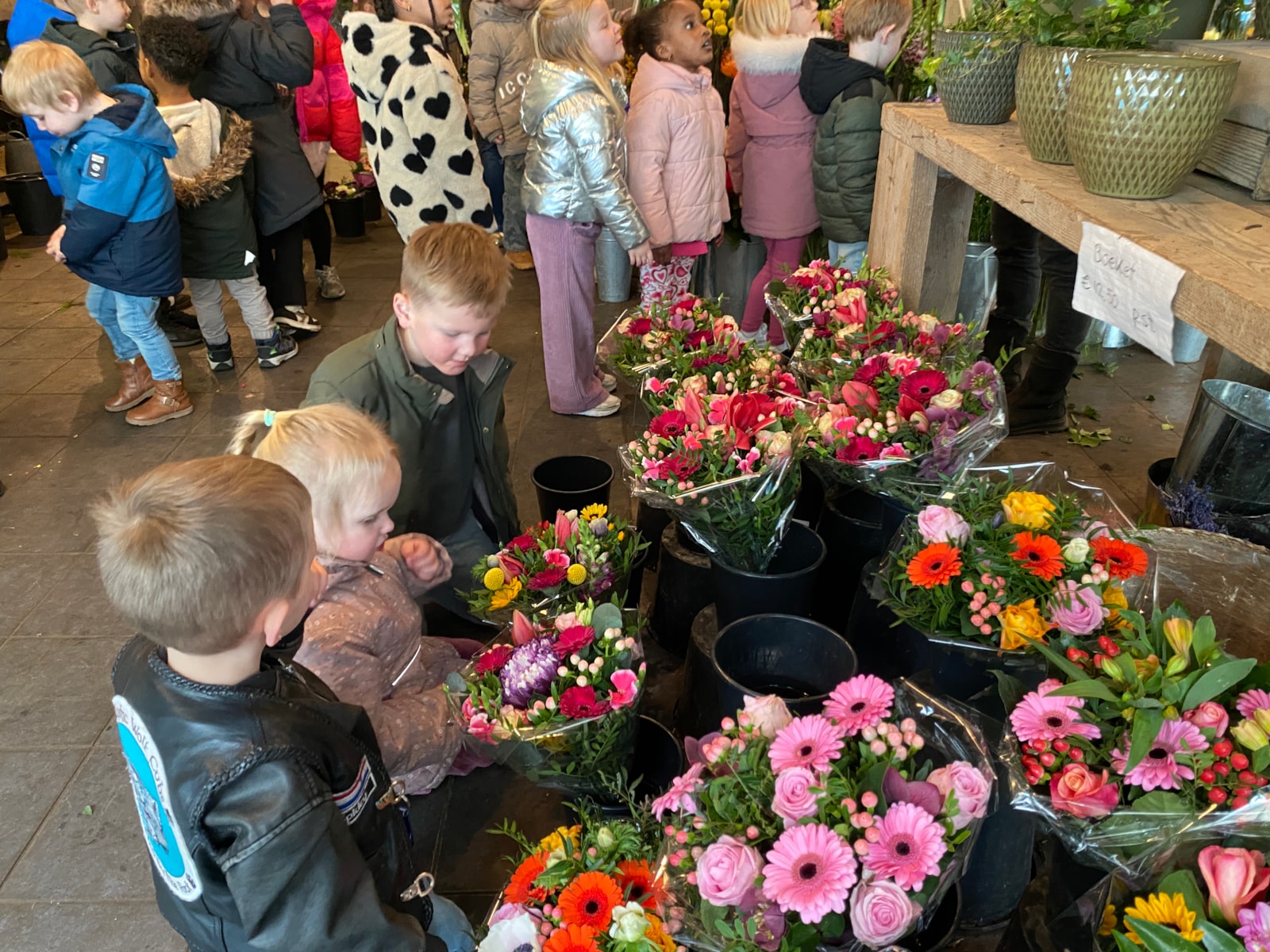 Vandaag gingen we in de middag naar de bloemenwinkel om te kijken hoe zo’n winkel eruit ziet en wat wij allemaal nodig hebben voor onze eigen winkel.