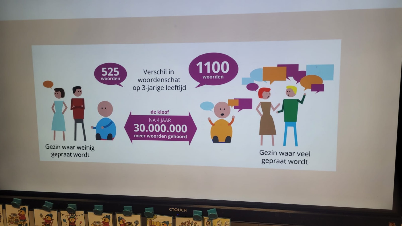 Door veel met je kind te praten en te lezen geef je je kind een taalvoorsprong. Een kind dat in een gezin opgroeit waar veel gepraat wordt, heeft na 4 jaar 30 miljoen woorden meer gehoord dan een kind in een gezin waar weinig tot niet wordt gepraat.