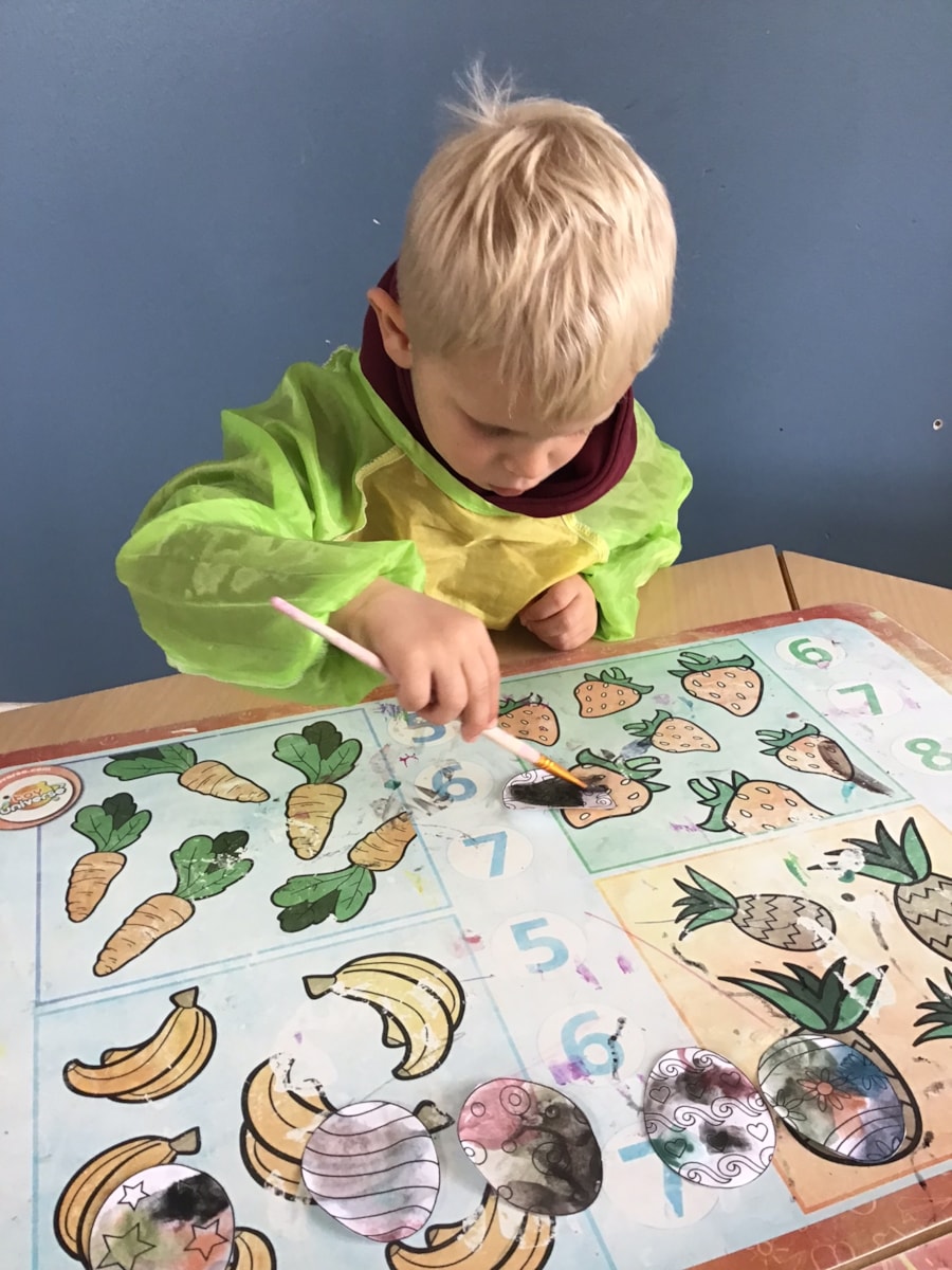 Op De Kleine Vlieberg werken we op dit moment over tuinieren en over Pasen. In onze glazen potjes groeien de bruine bonen plantjes al boven de rand uit. We hebben gieters geplakt en ook een lieveheersbeestje geknutseld. Afgelopen week hebben we 2 Palmpasen stokken gemaakt, deze hebben we vrijdag naar onze buren gebracht. Het volgende thema gaan we werken over kleuren.