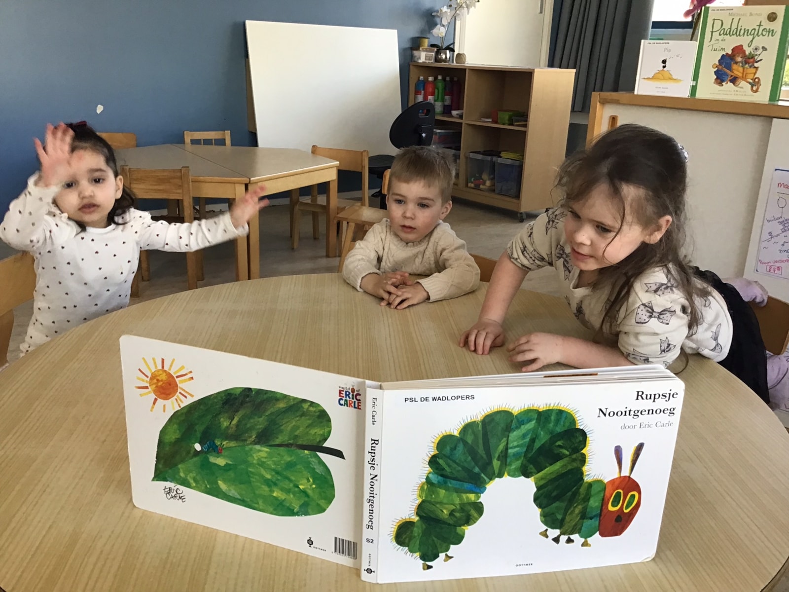 lezen wij en zingen wij over Rupsje Nooitgenoeg. Ook zijn wij nu bezig met Pasen en hebben wij onze