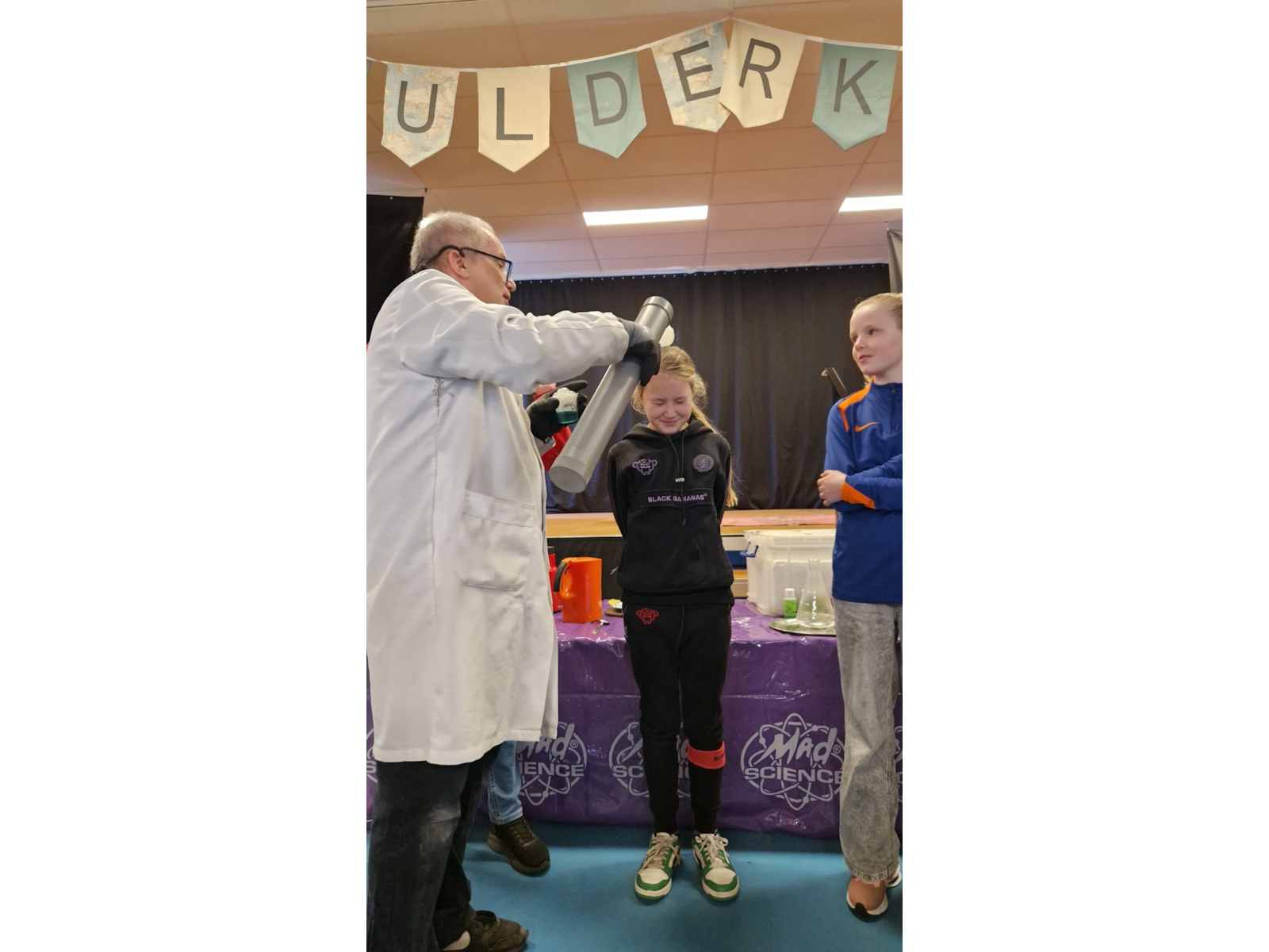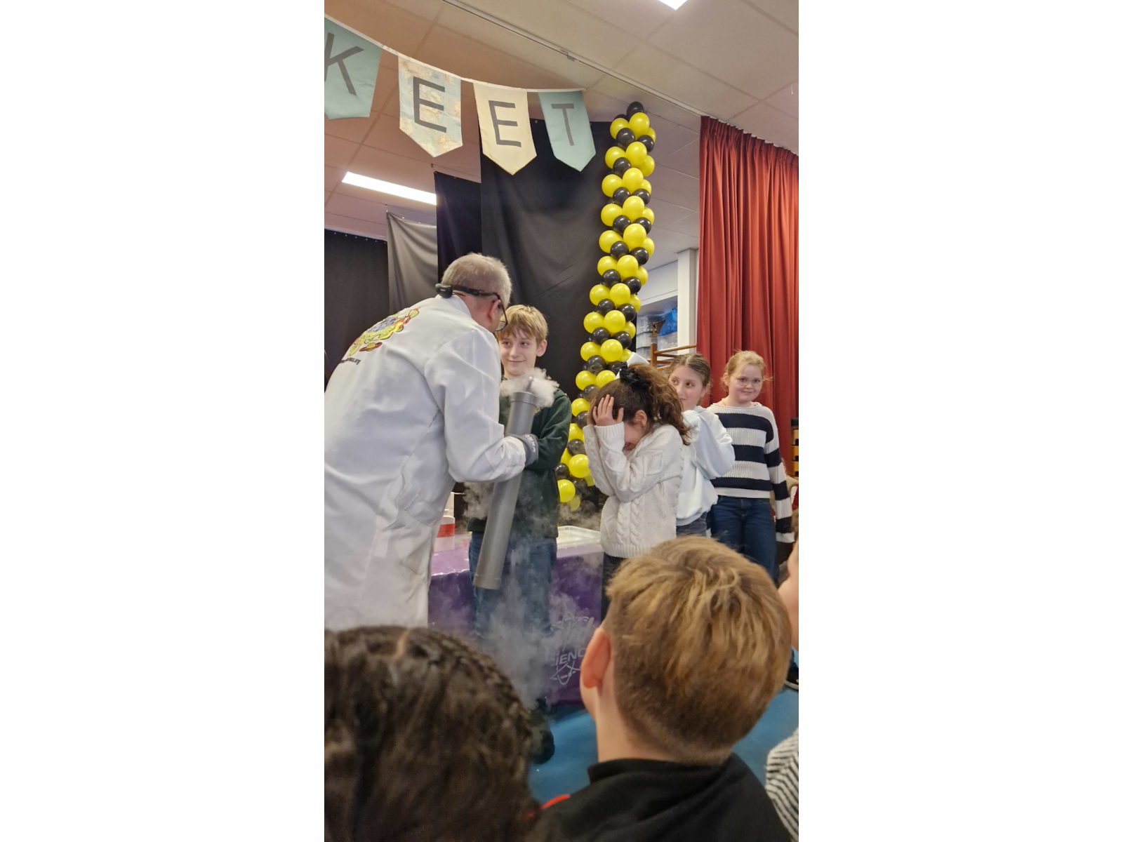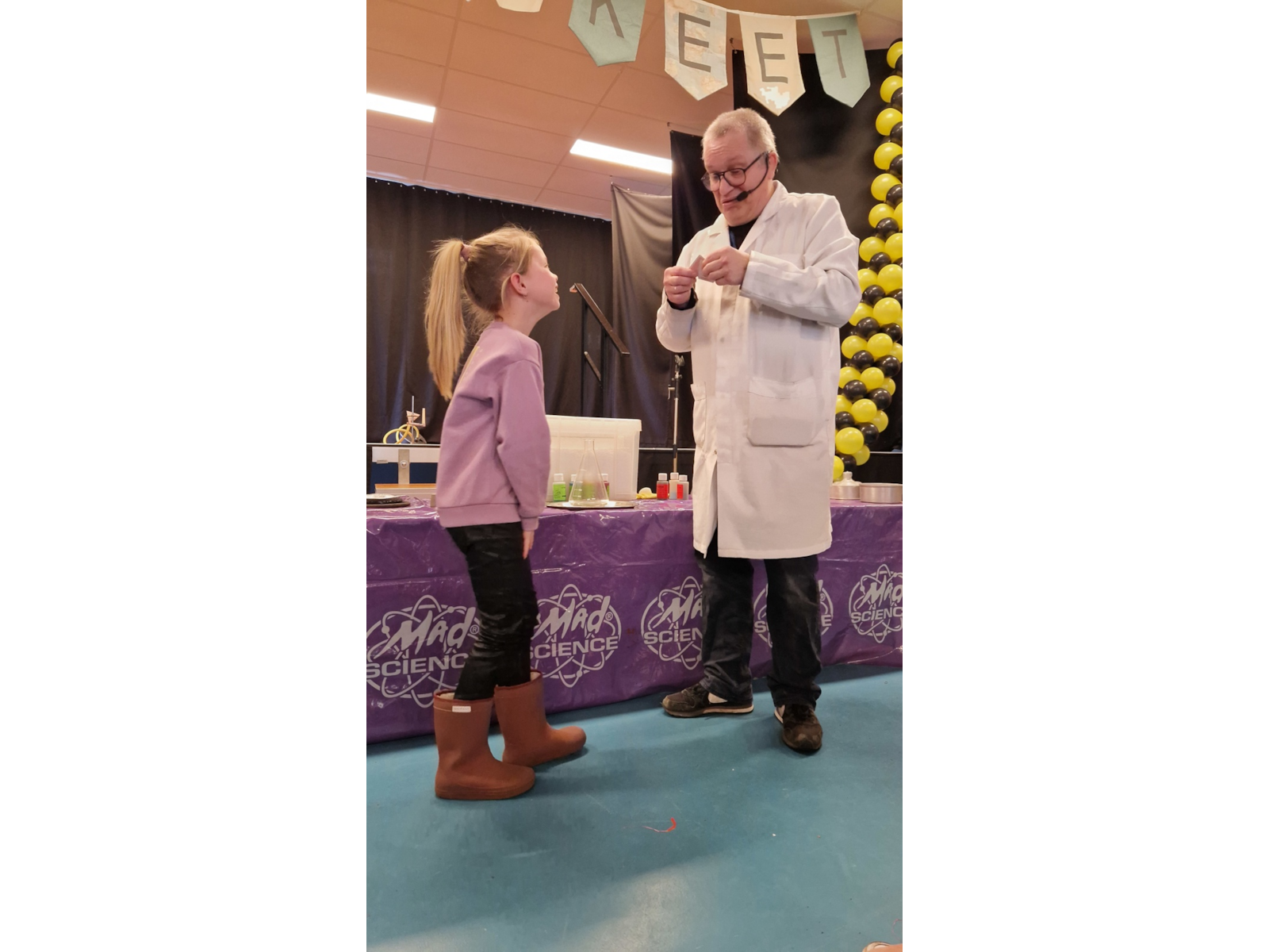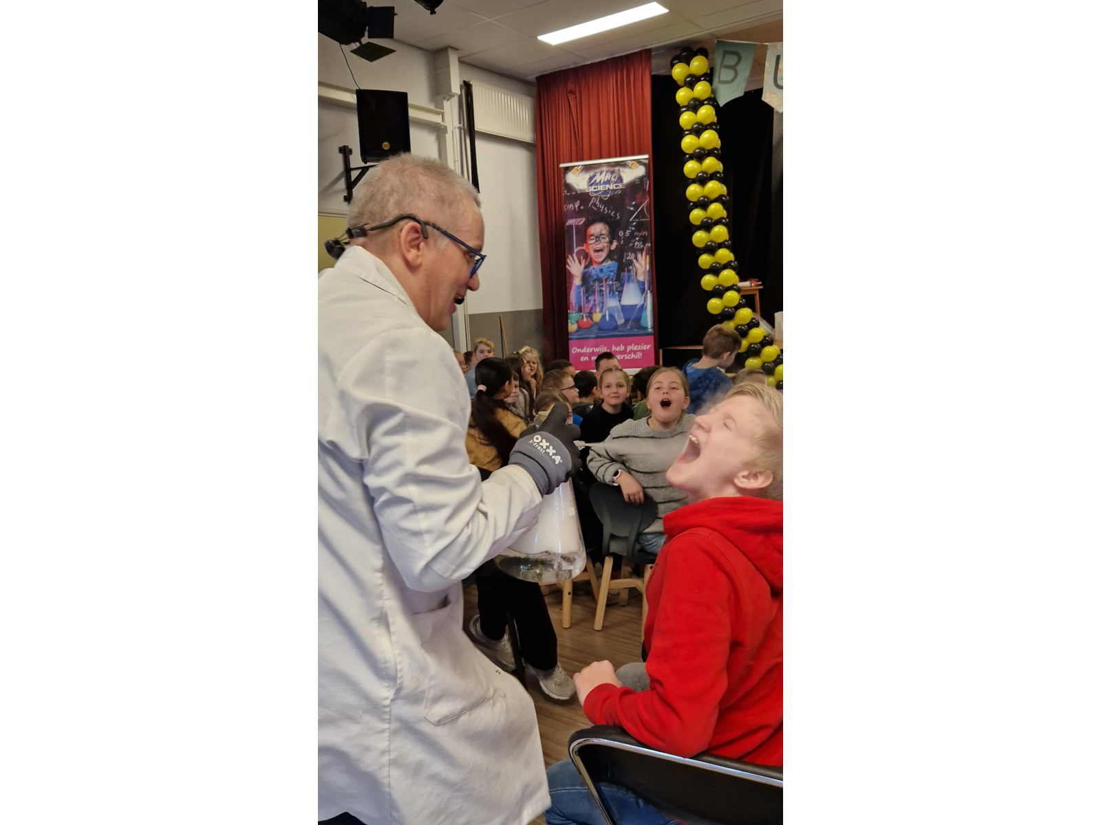 Vandaag hebben alle kinderen genoten van een show van een Mad Scientist! Vlammen, vuurwerk, droogijs, zeepbellen... van alles kwam voorbij.