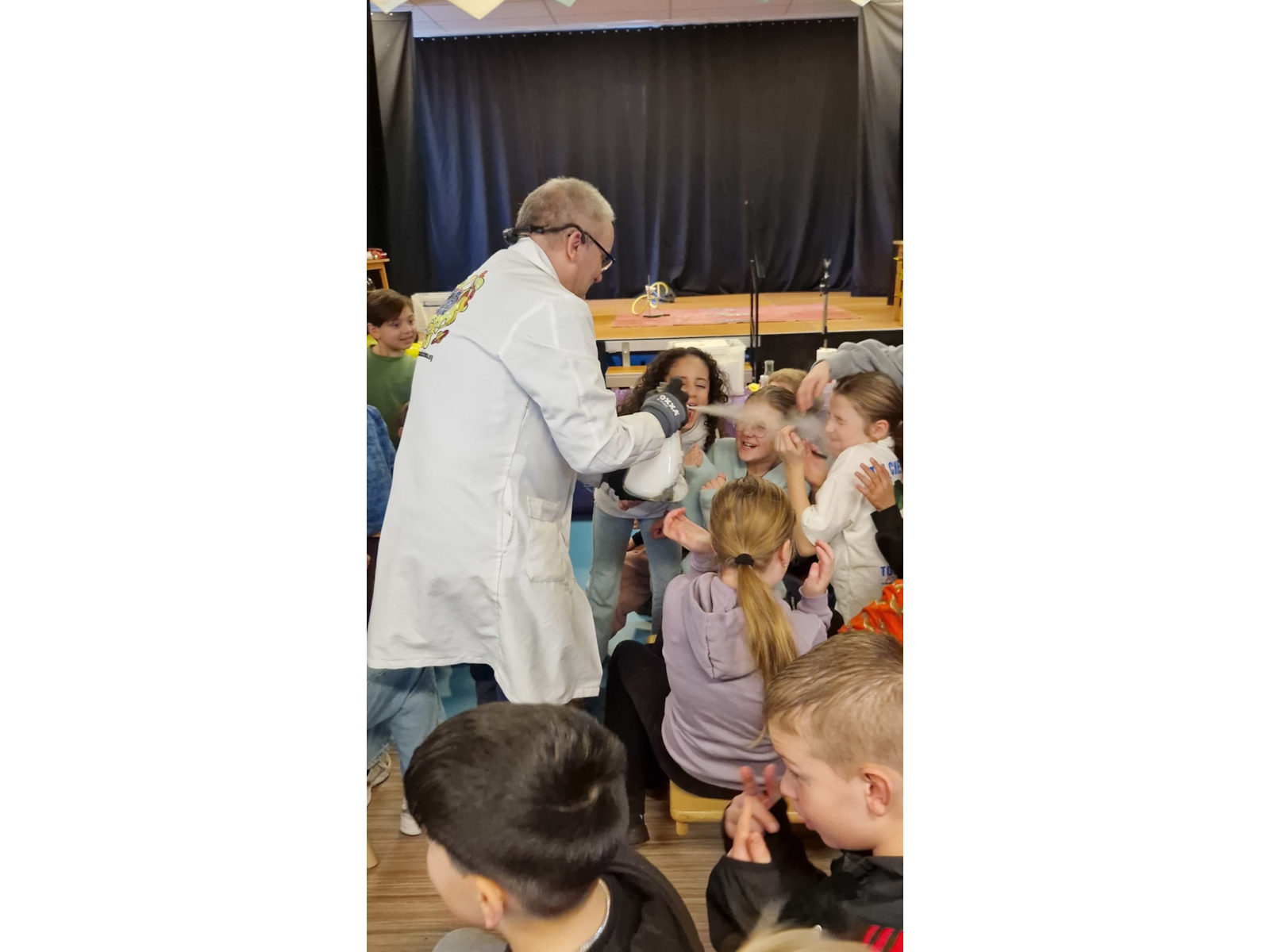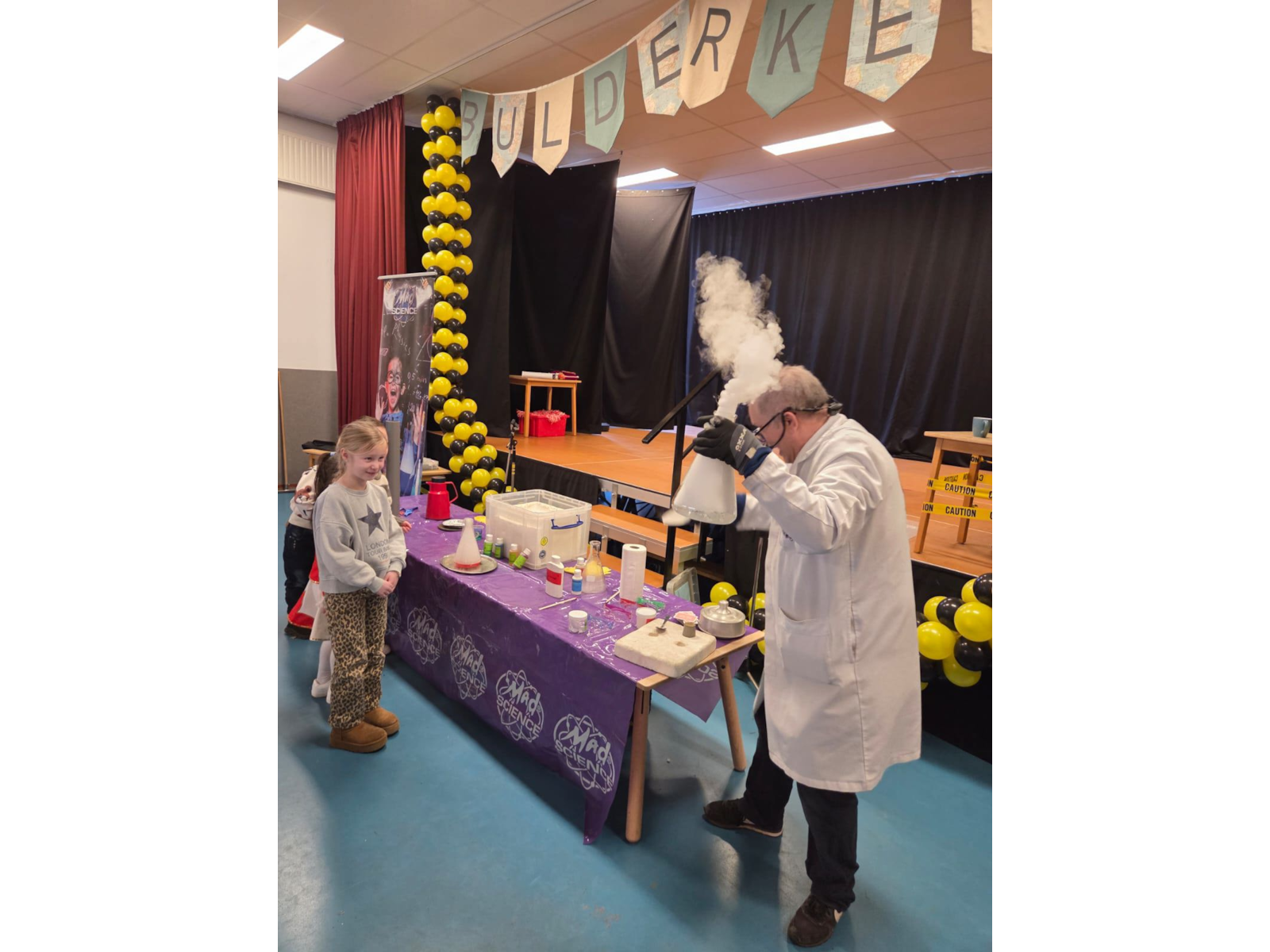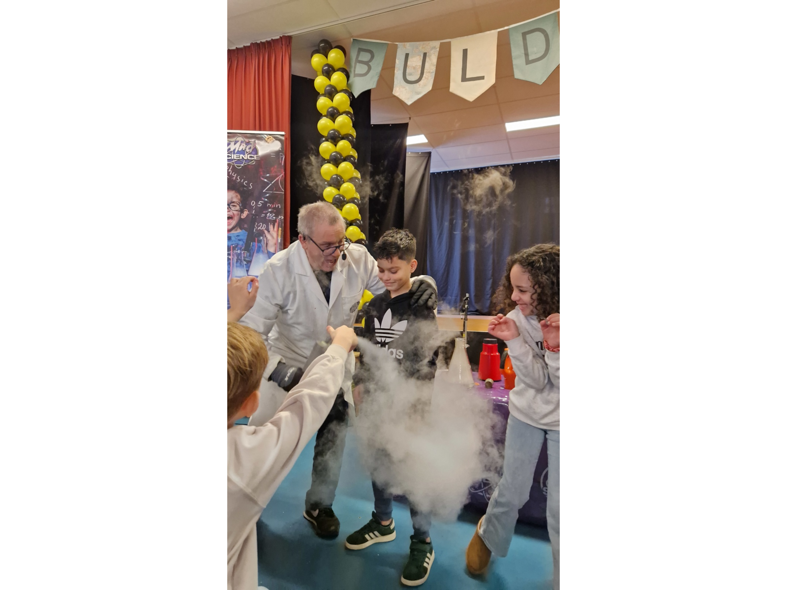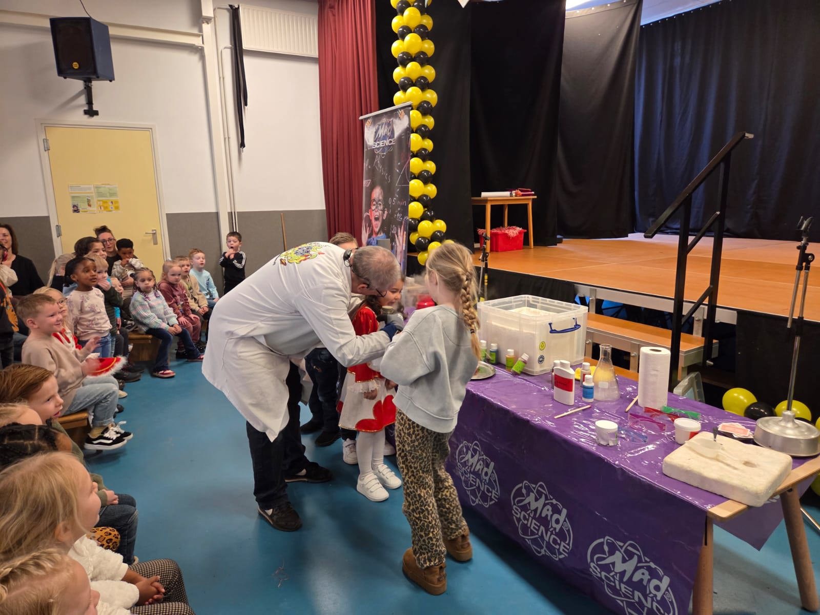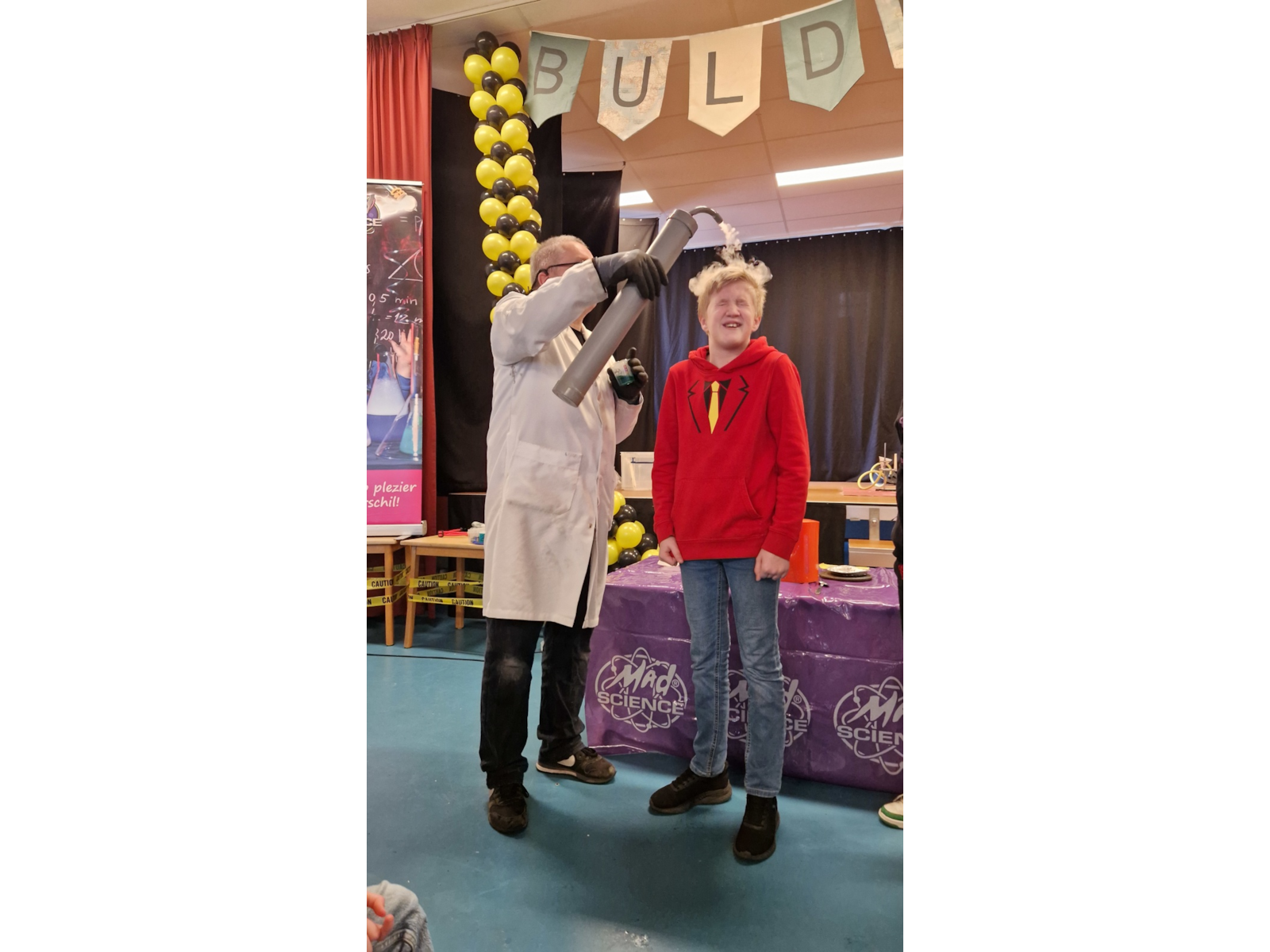 Vandaag hebben alle kinderen genoten van een show van een Mad Scientist! Vlammen, vuurwerk, droogijs, zeepbellen... van alles kwam voorbij.