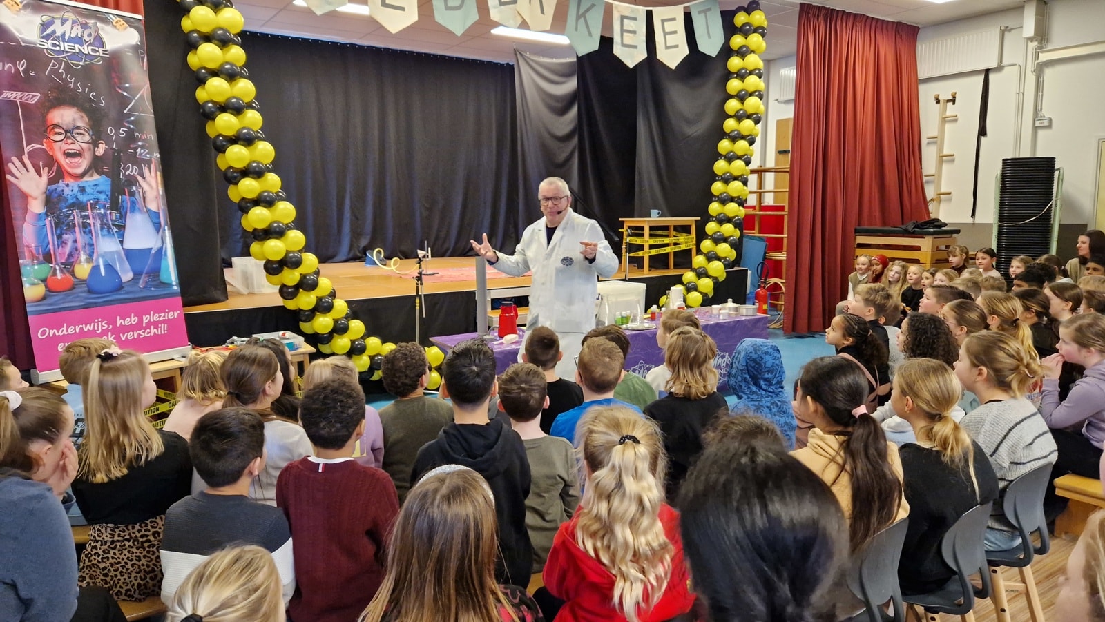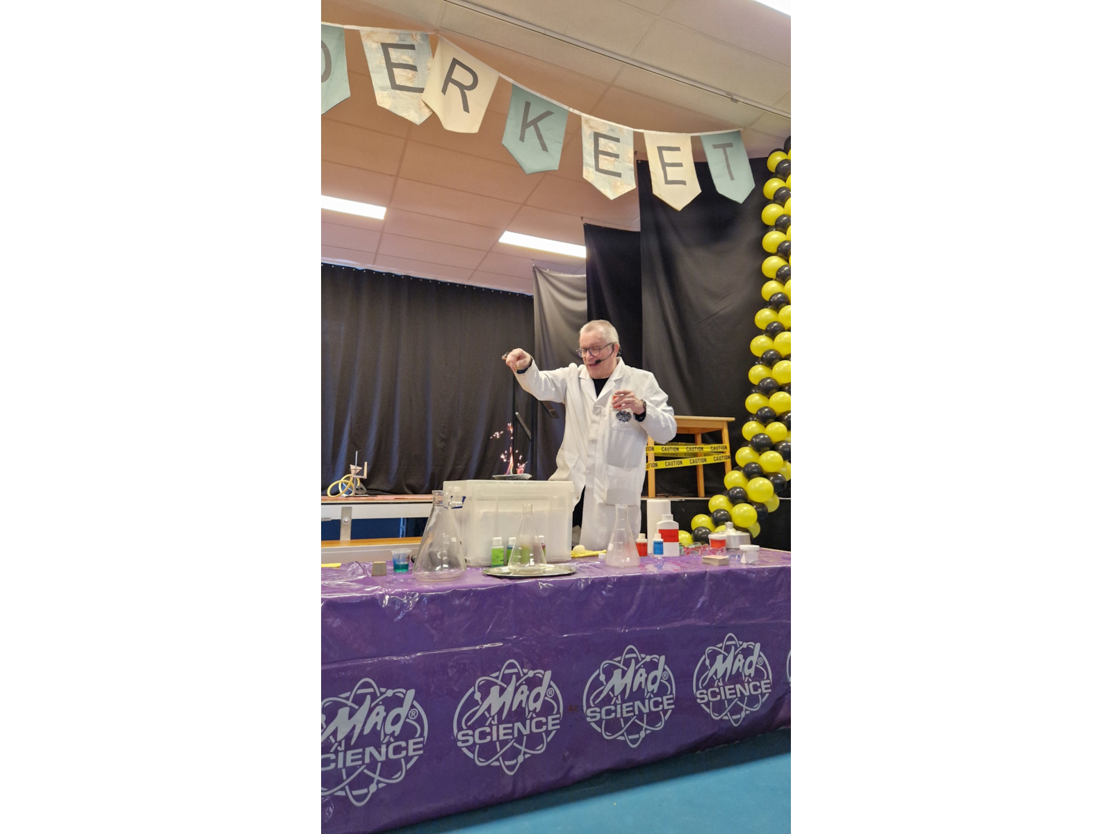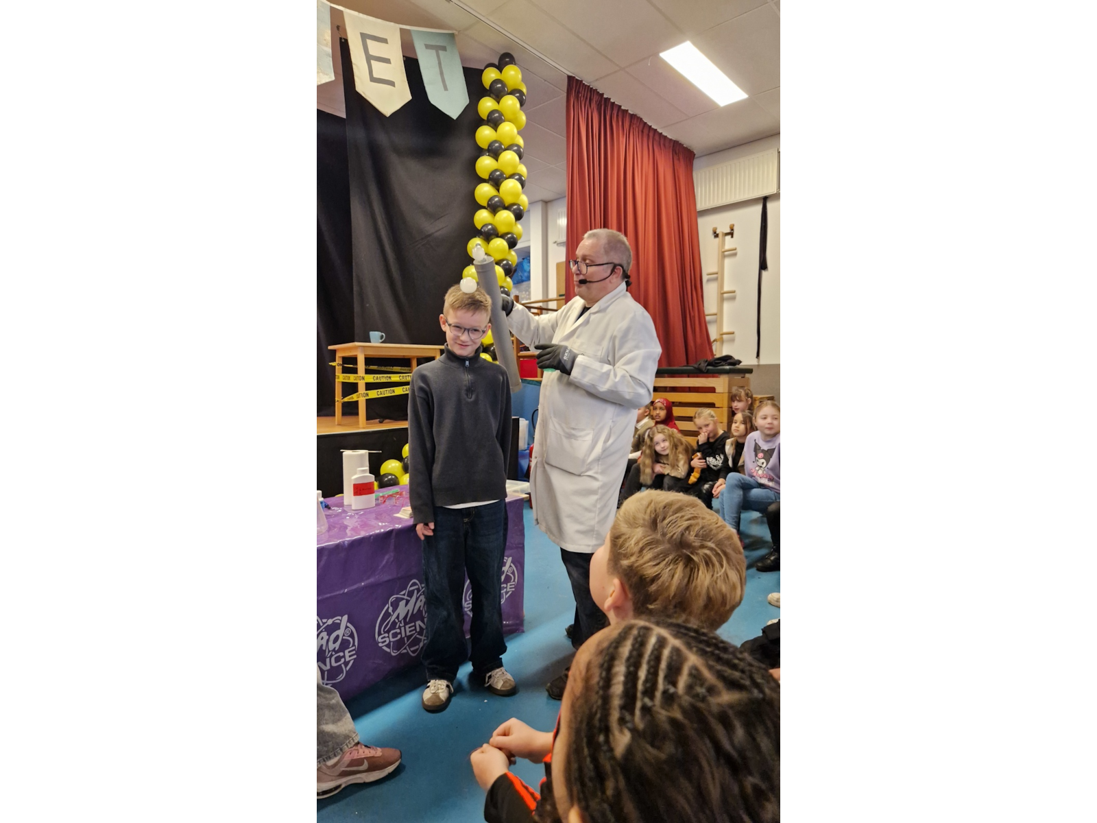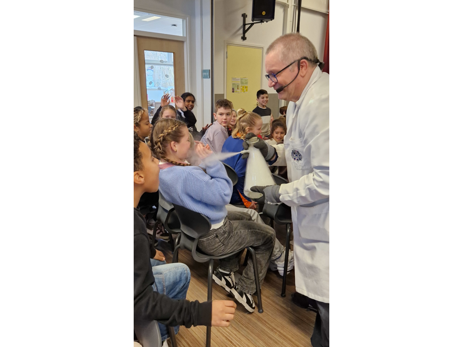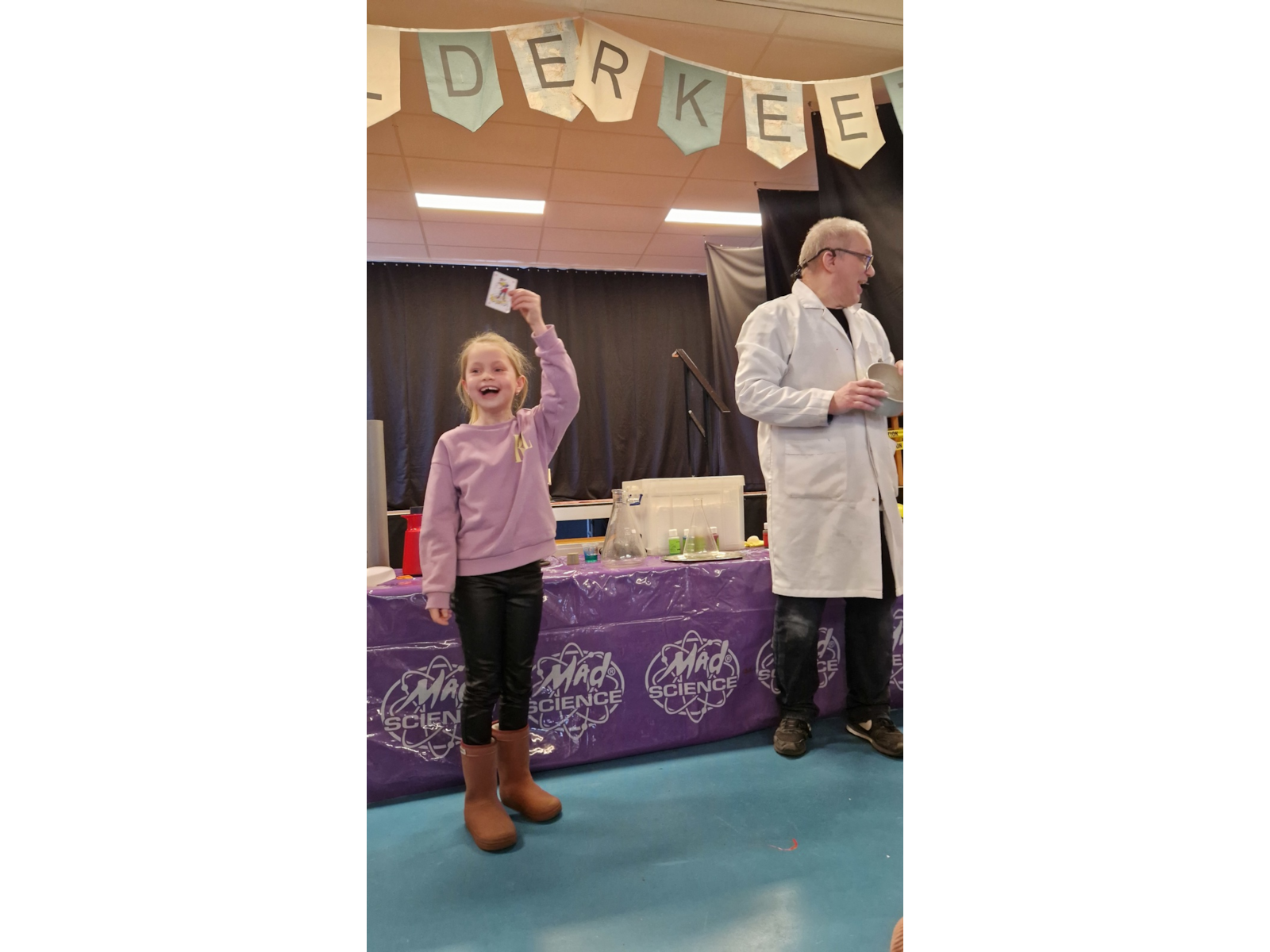 Vandaag hebben alle kinderen genoten van een show van een Mad Scientist! Vlammen, vuurwerk, droogijs, zeepbellen... van alles kwam voorbij.