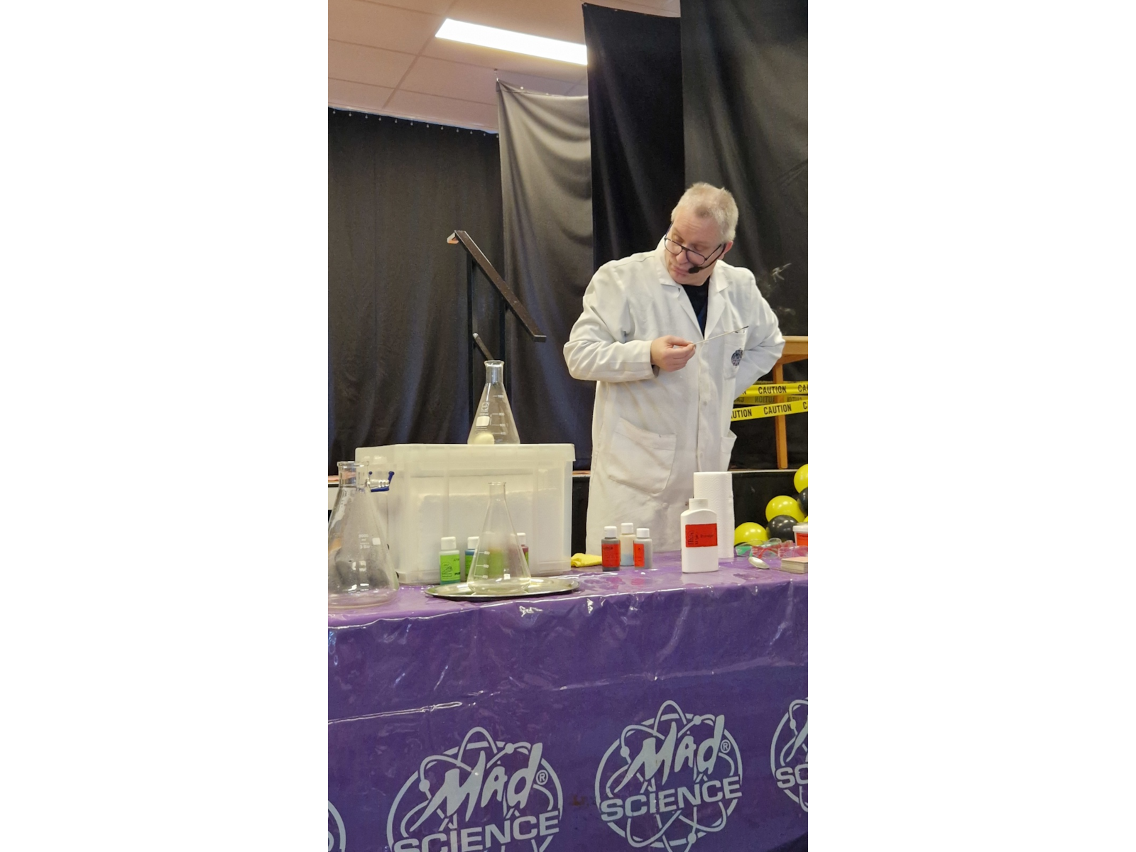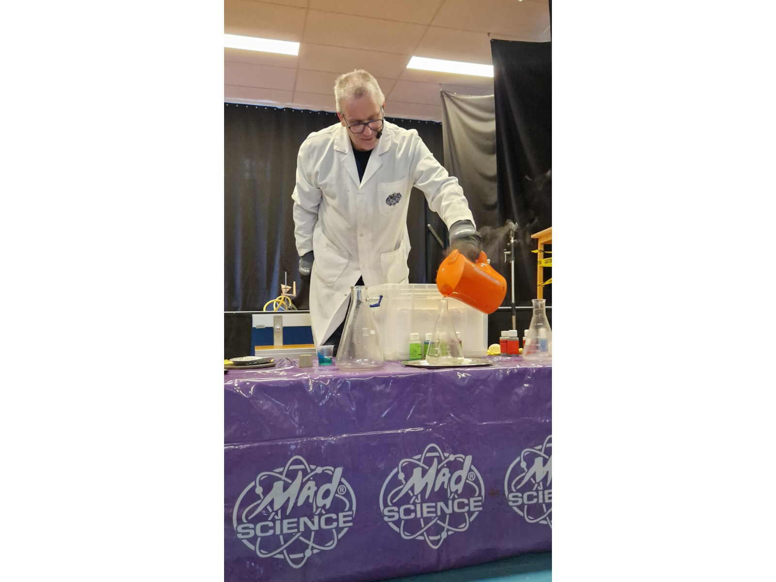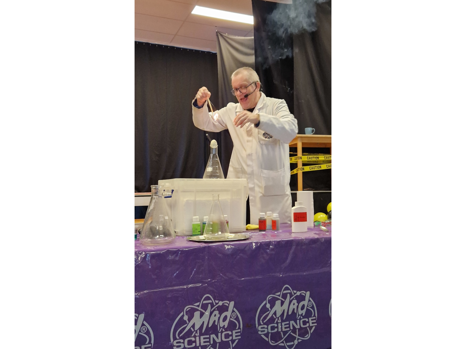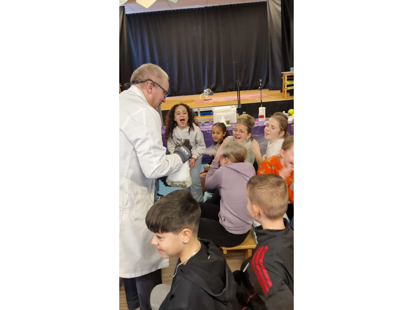Vandaag hebben alle kinderen genoten van een show van een Mad Scientist! Vlammen, vuurwerk, droogijs, zeepbellen... van alles kwam voorbij.