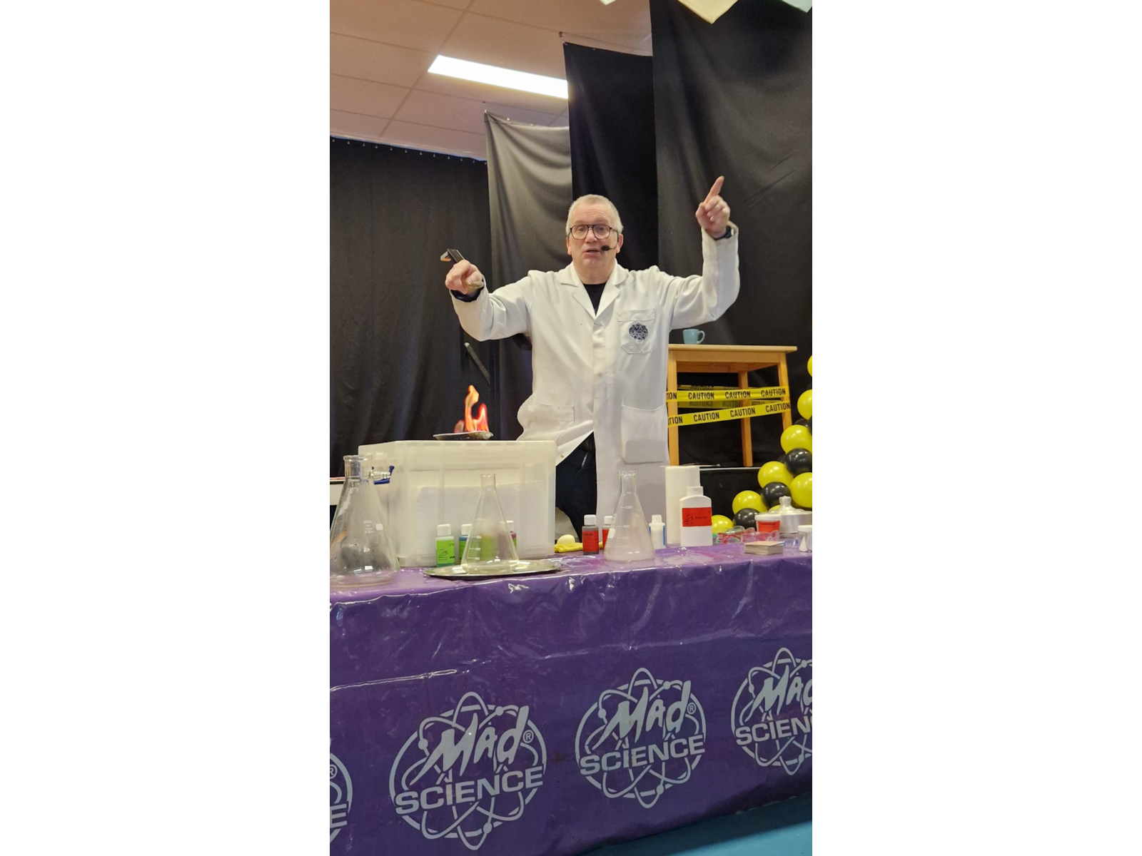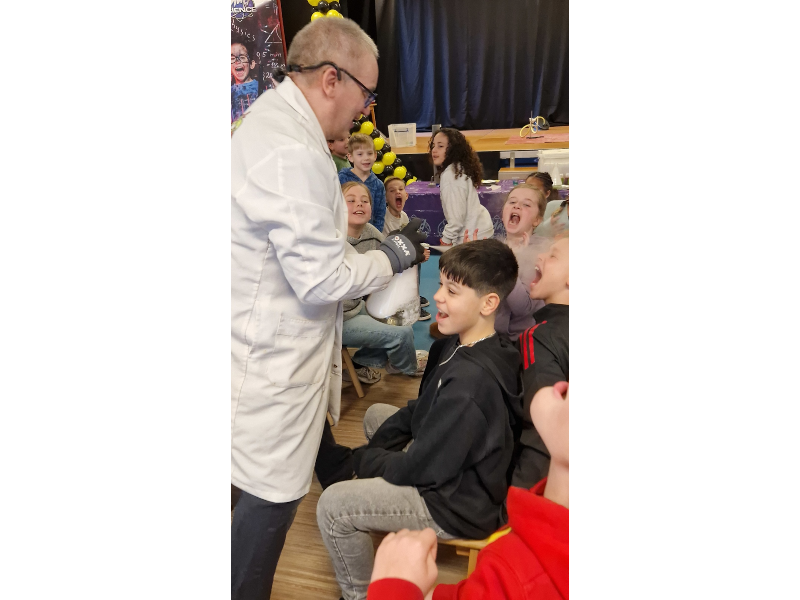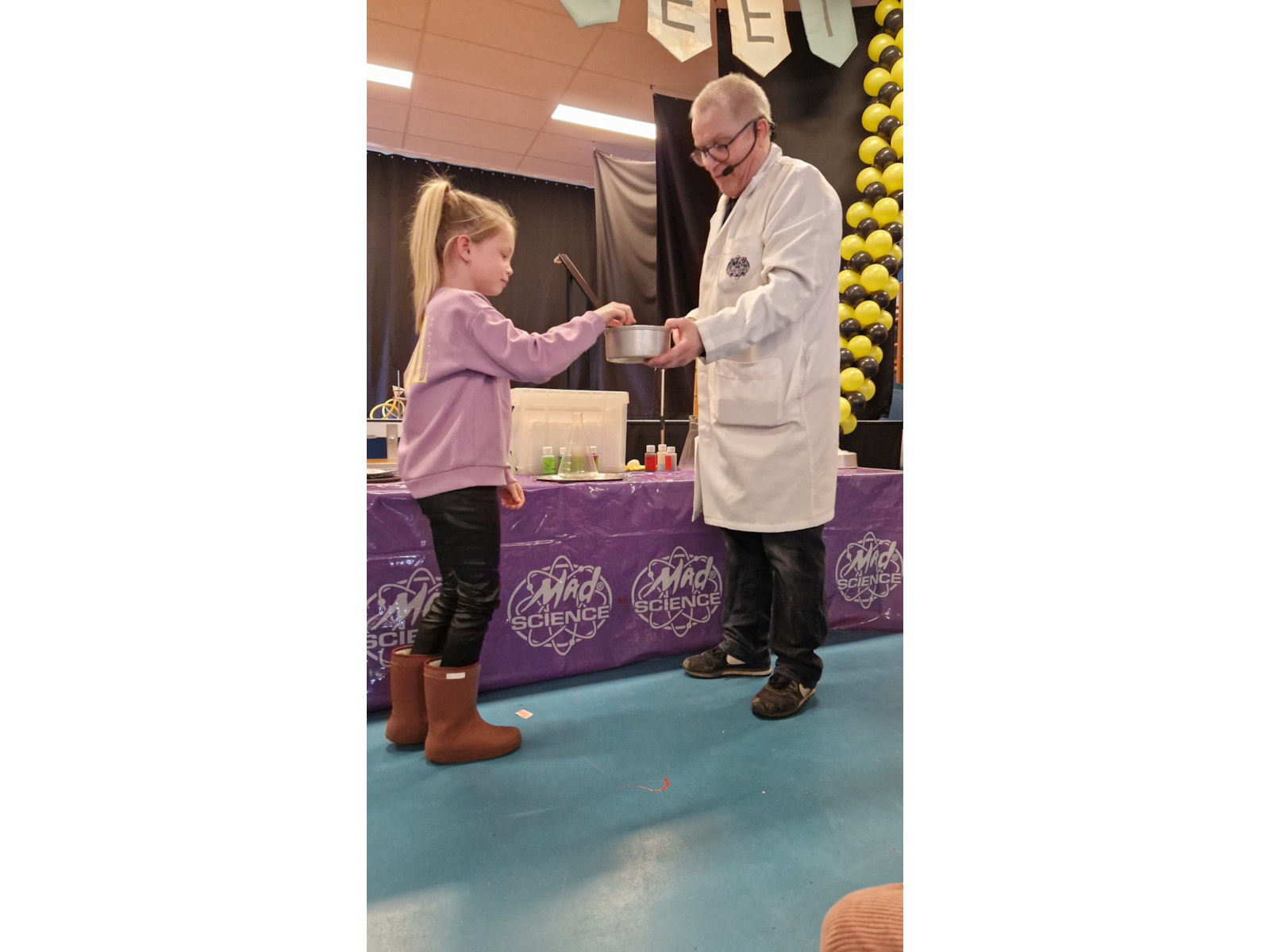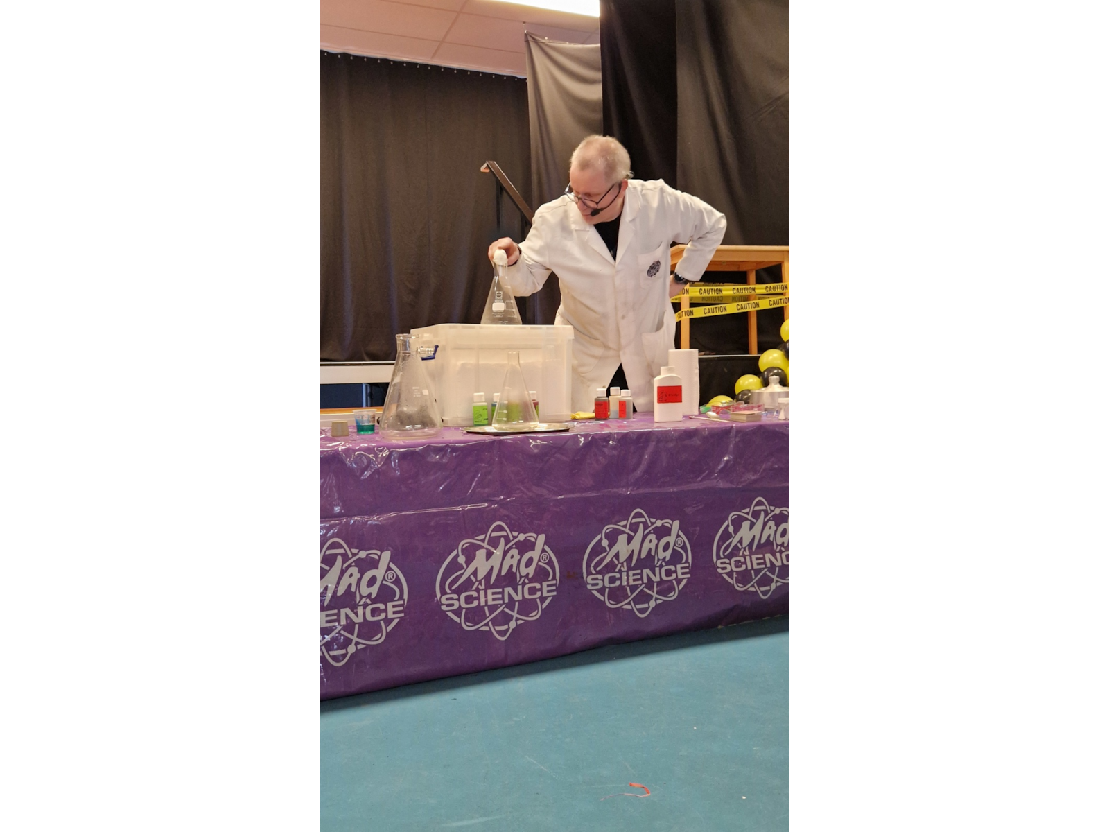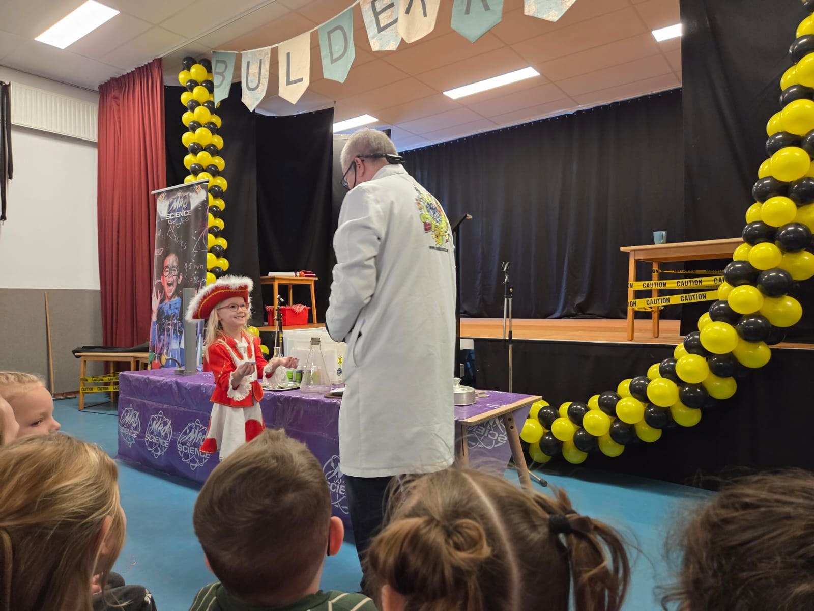 Vandaag hebben alle kinderen genoten van een show van een Mad Scientist! Vlammen, vuurwerk, droogijs, zeepbellen... van alles kwam voorbij.