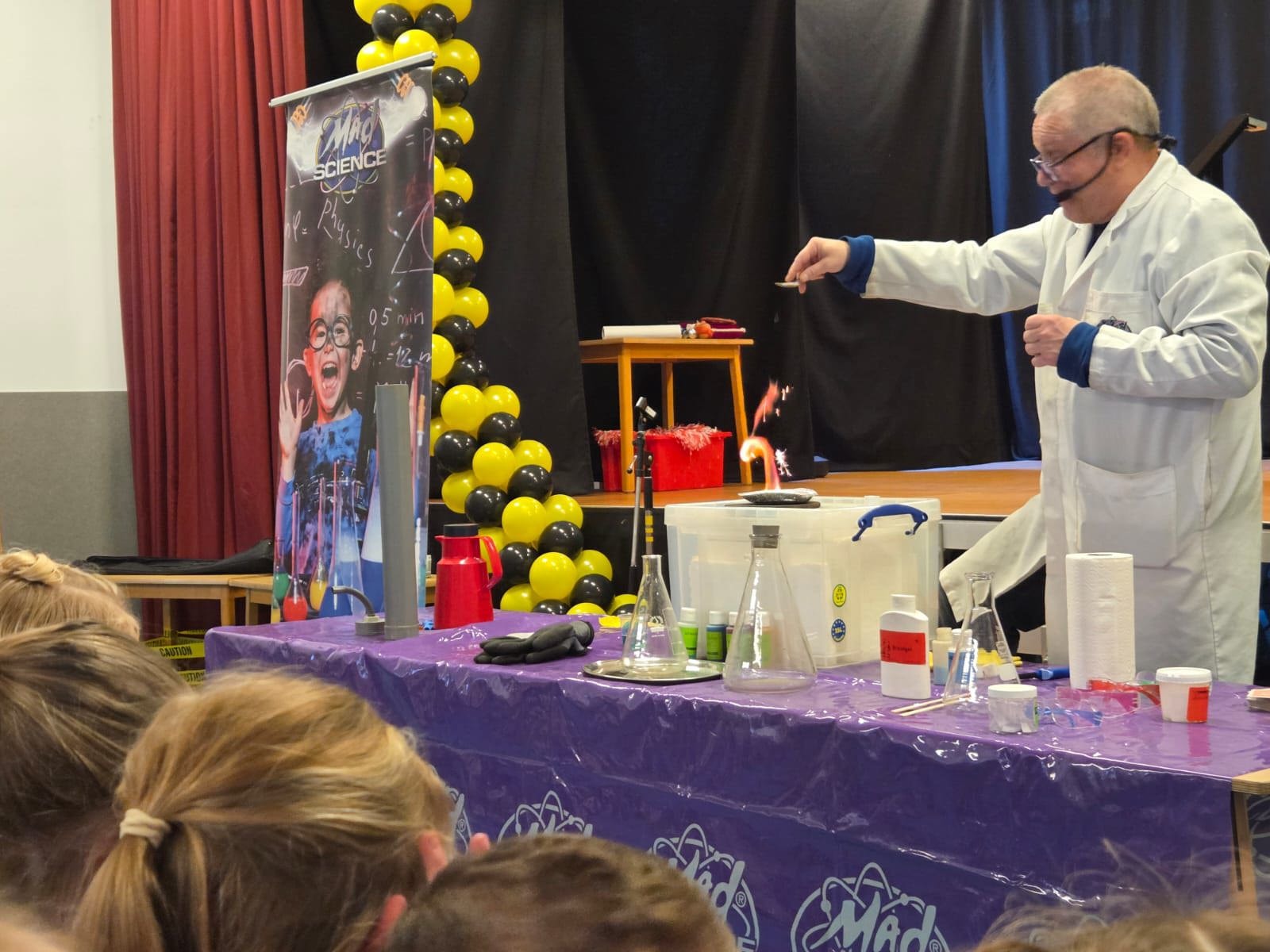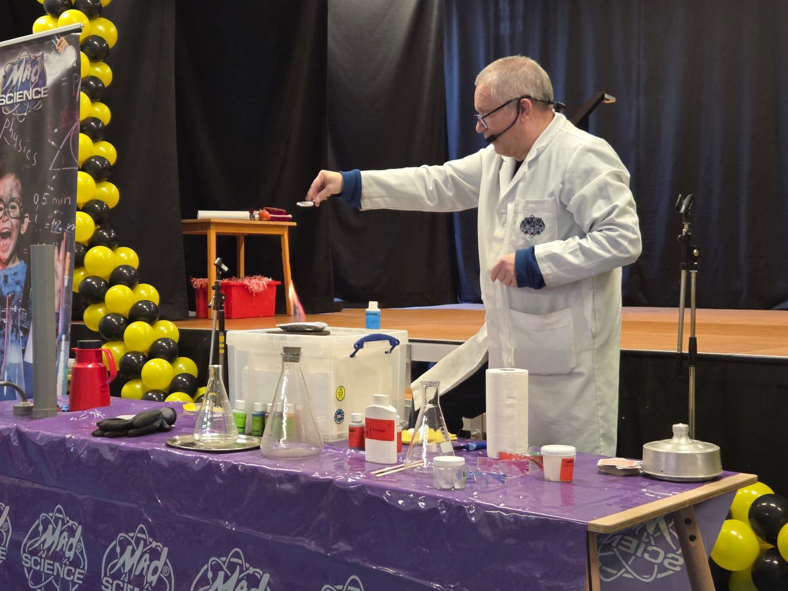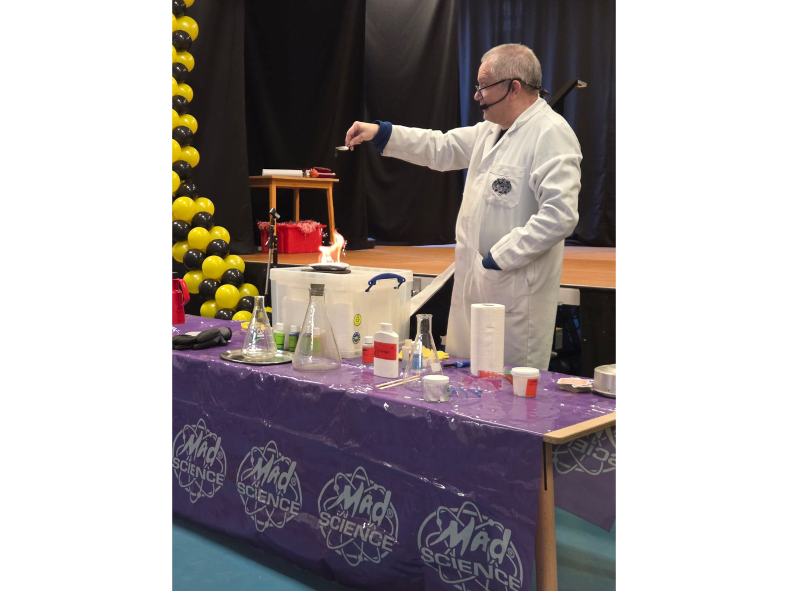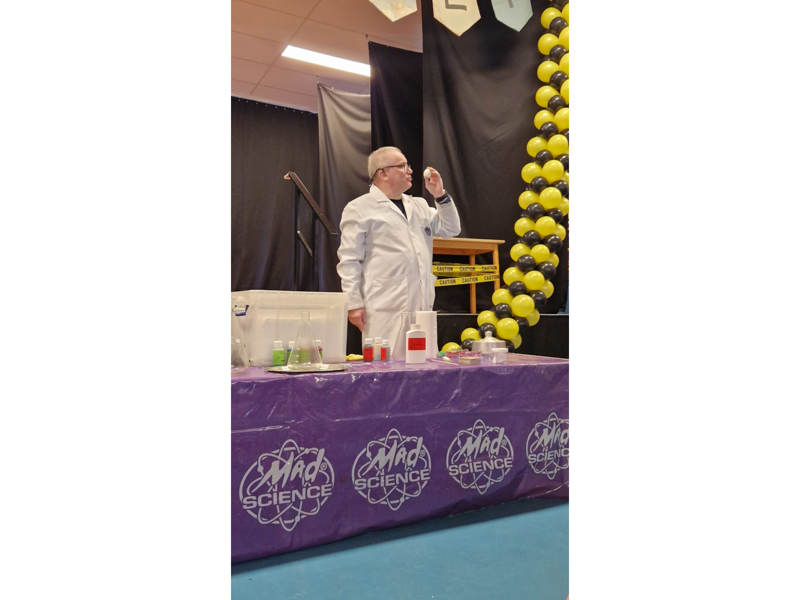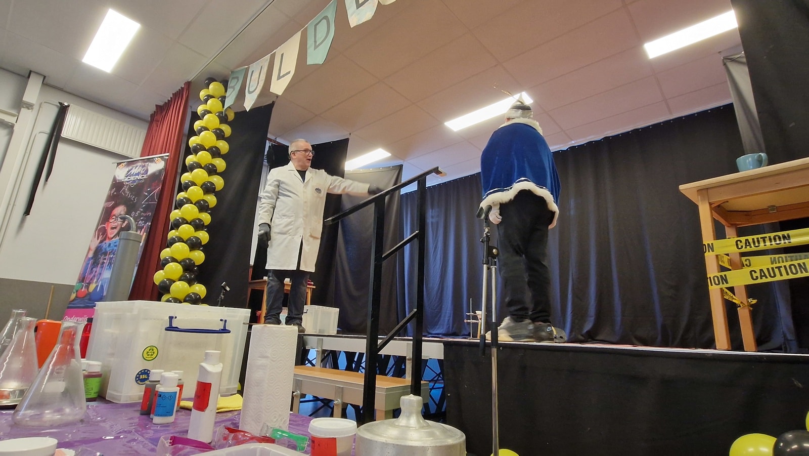 Vandaag hebben alle kinderen genoten van een show van een Mad Scientist! Vlammen, vuurwerk, droogijs, zeepbellen... van alles kwam voorbij.
