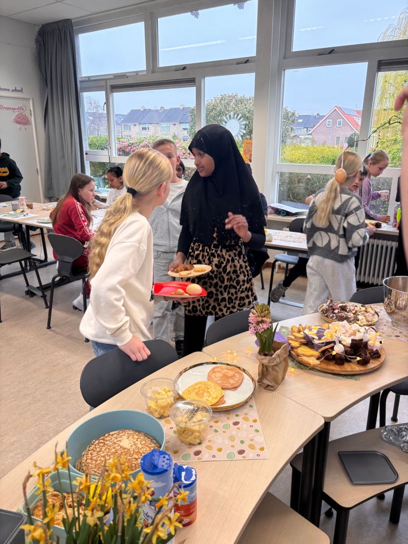 Vandaag vierden we Pasen met elkaar. De kinderen van groep 3 tot en met 8 genoten samen van een gezellig paasontbijt in de klas. Er werd gesmuld van al het lekkers en vooral veel gelachen.
